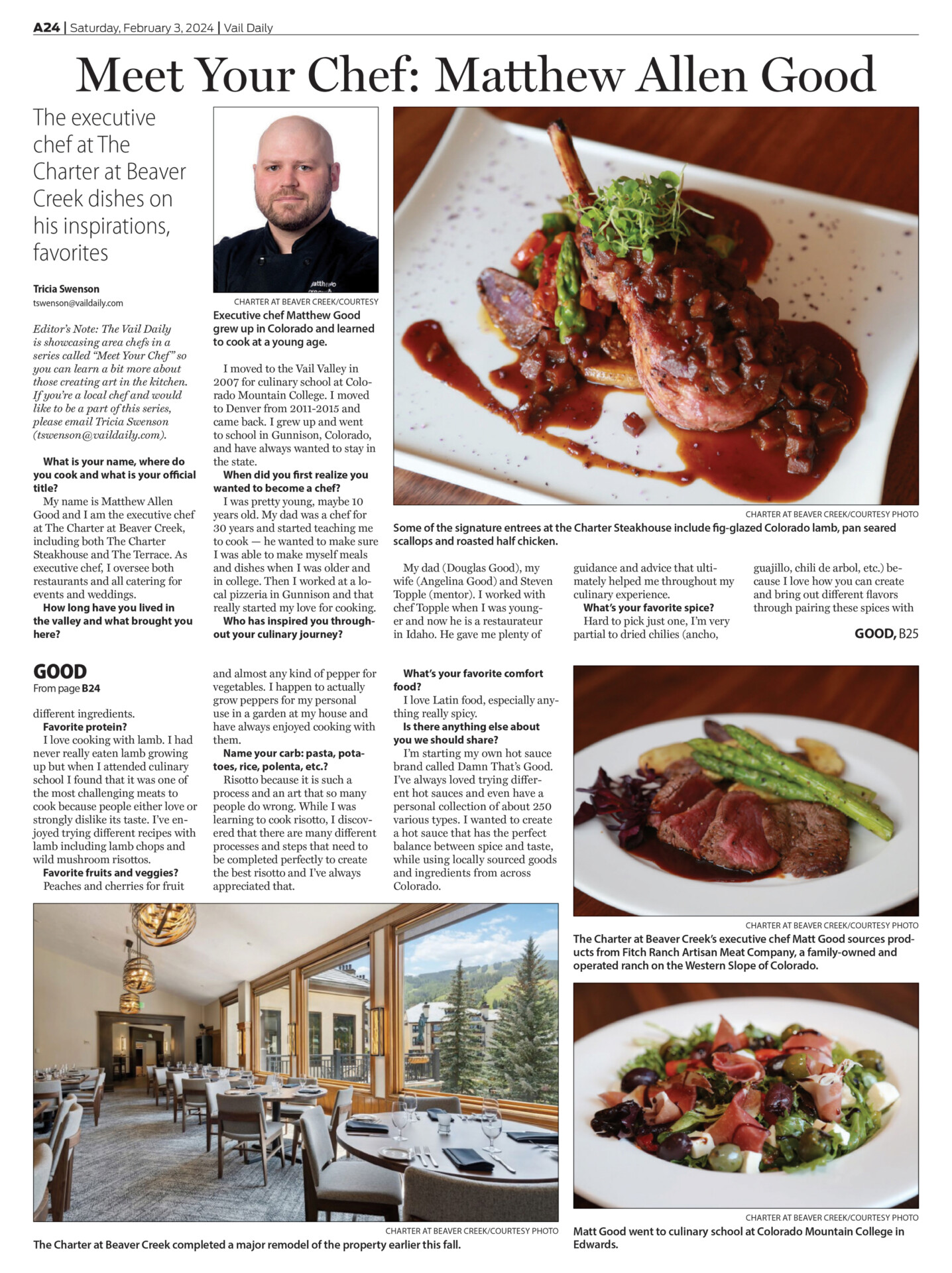 The Charter Steakhouse is an elevated mountain casual steakhouse located in Beaver Creek, Colorado. It celebrates the mountain environment and lifestyle with dishes and ingredients that are locally sourced and showcase the best of the region. The restaurant is located in the The Charter Hotel, which has been operating in Beaver Creek for 40 years.